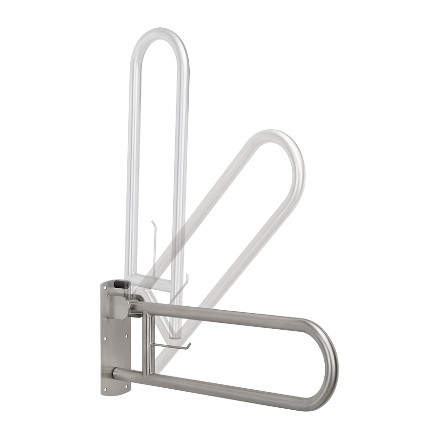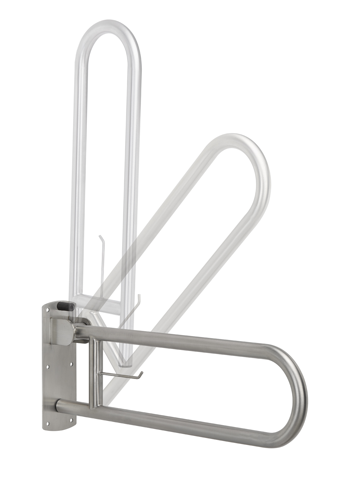 Drop-down support bar with vertical rotation, 3 fixed positions, progressive brake and toilet roll holder, for installation next to the toilet.