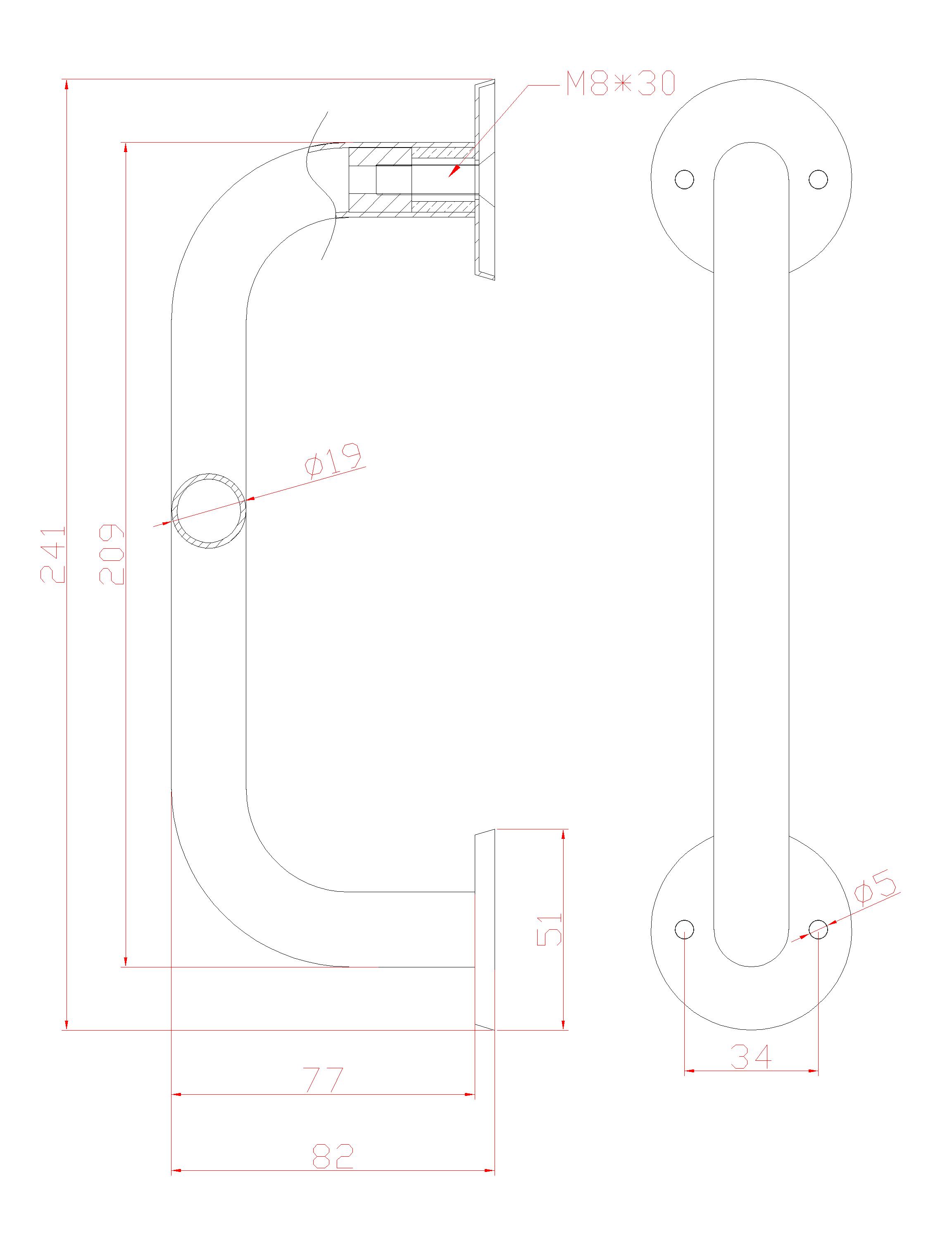 Manillón recto para adosar a la pared, con dos apoyos. Fabricado en acero.