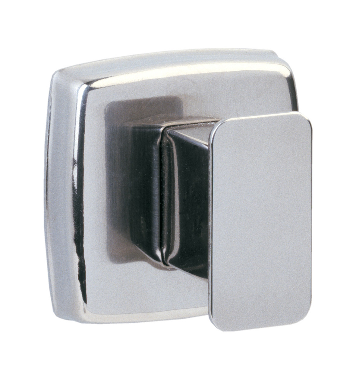 Percha de baño unitaria fabricada con acero inoxidable AISI 304, para adosar a la pared.