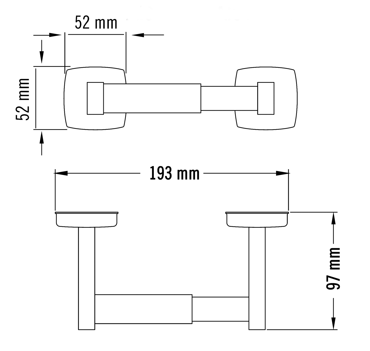 Portarrollos sin faldón para adosar a la pared, fabricado en acero inoxidable AISI 304, incluye soporte de pared y eje para rollo.