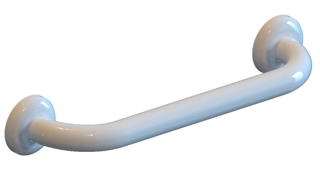Barra de apoyo recta, fabricada en tubo de acero de Ø32, en acabado blanco brillante RAL 9016 y gris brillante RAL 7035.