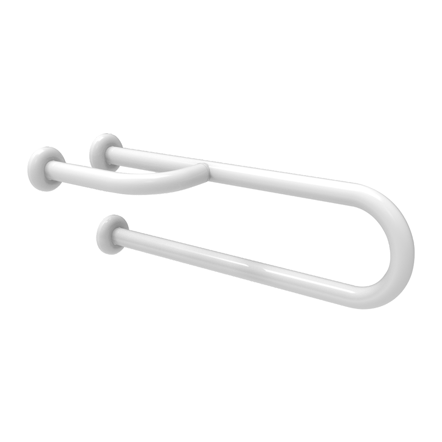 Barra de apoyo fija de 600 mm con refuerzo, reversible derecha o izquierda. Compuesta por 1 sola pieza y sin juntas.