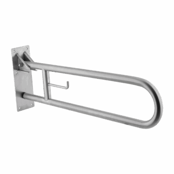 Barra abatible de giro vertical con portarrollos, fabricada con tubo de acero inoxidable acabado satinado