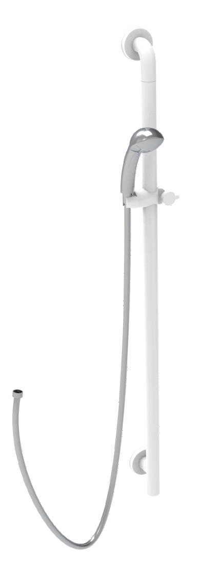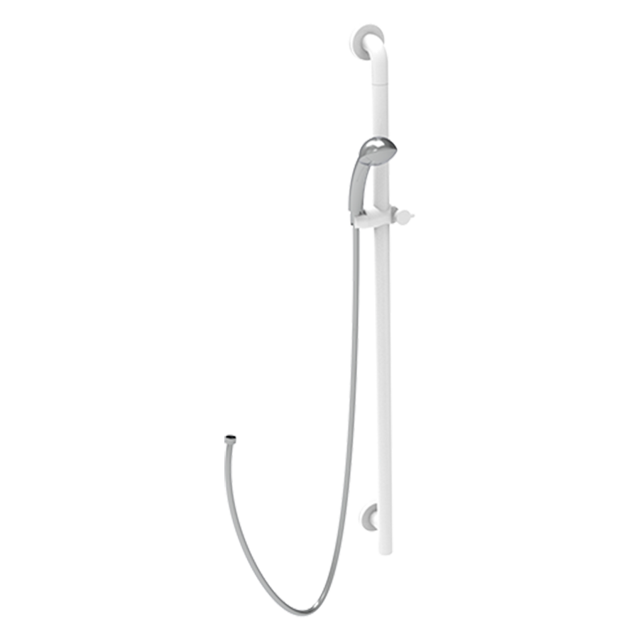 Barra recta vertical Ø35 mm y 1200 mm con función de barra deslizante de ducha, ducha jet en abs cromado, tubo flexible.