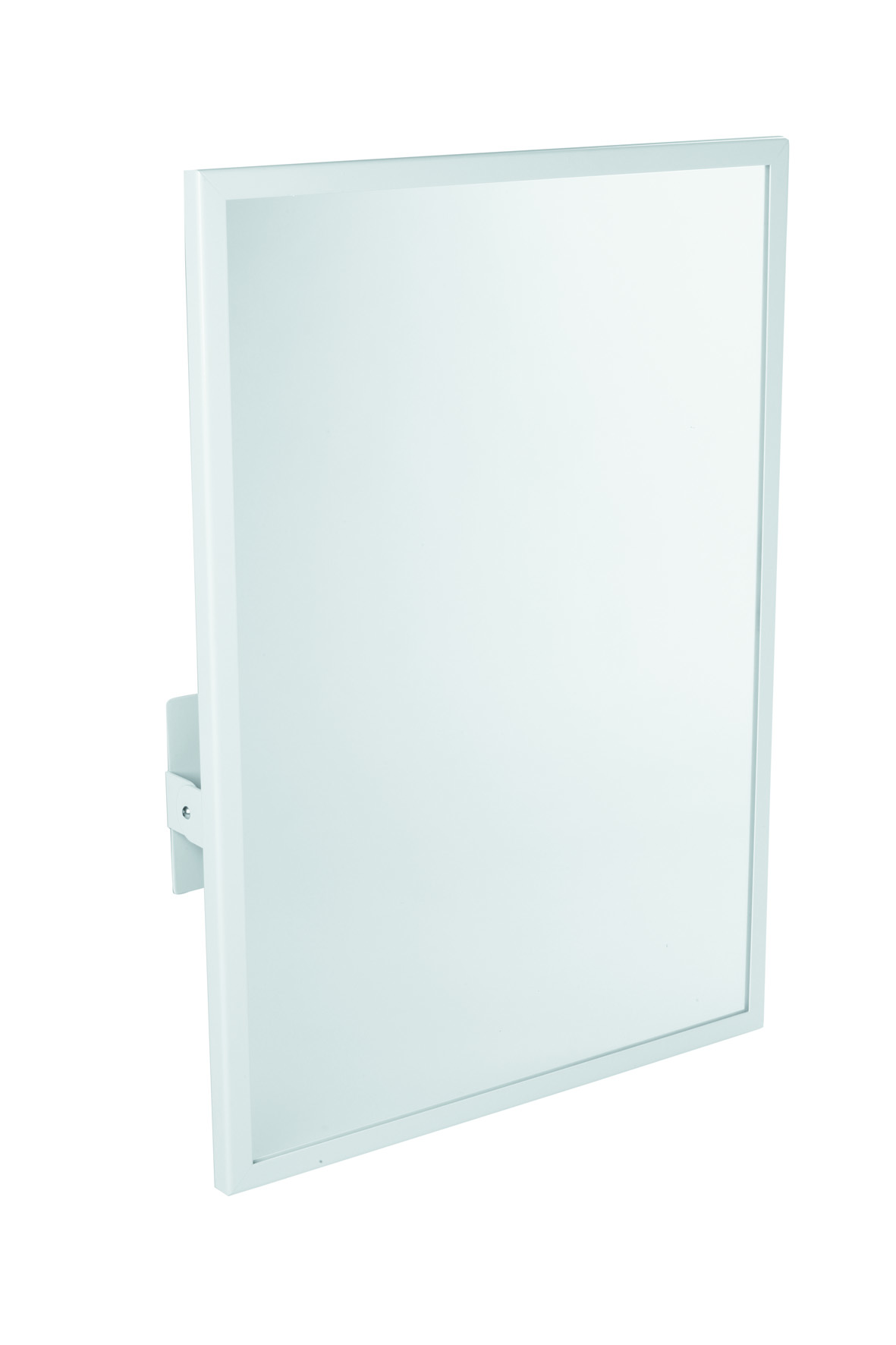 Kippspiegel mit Rahmen aus 1,5 mm starkem Edelstahl, mit verschweißten und polierten Ecken.