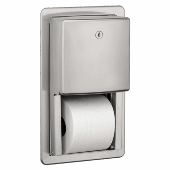 Dispensador empotrable de papel higiénico para dos rollos estándar, en acero inoxidable AISI 304