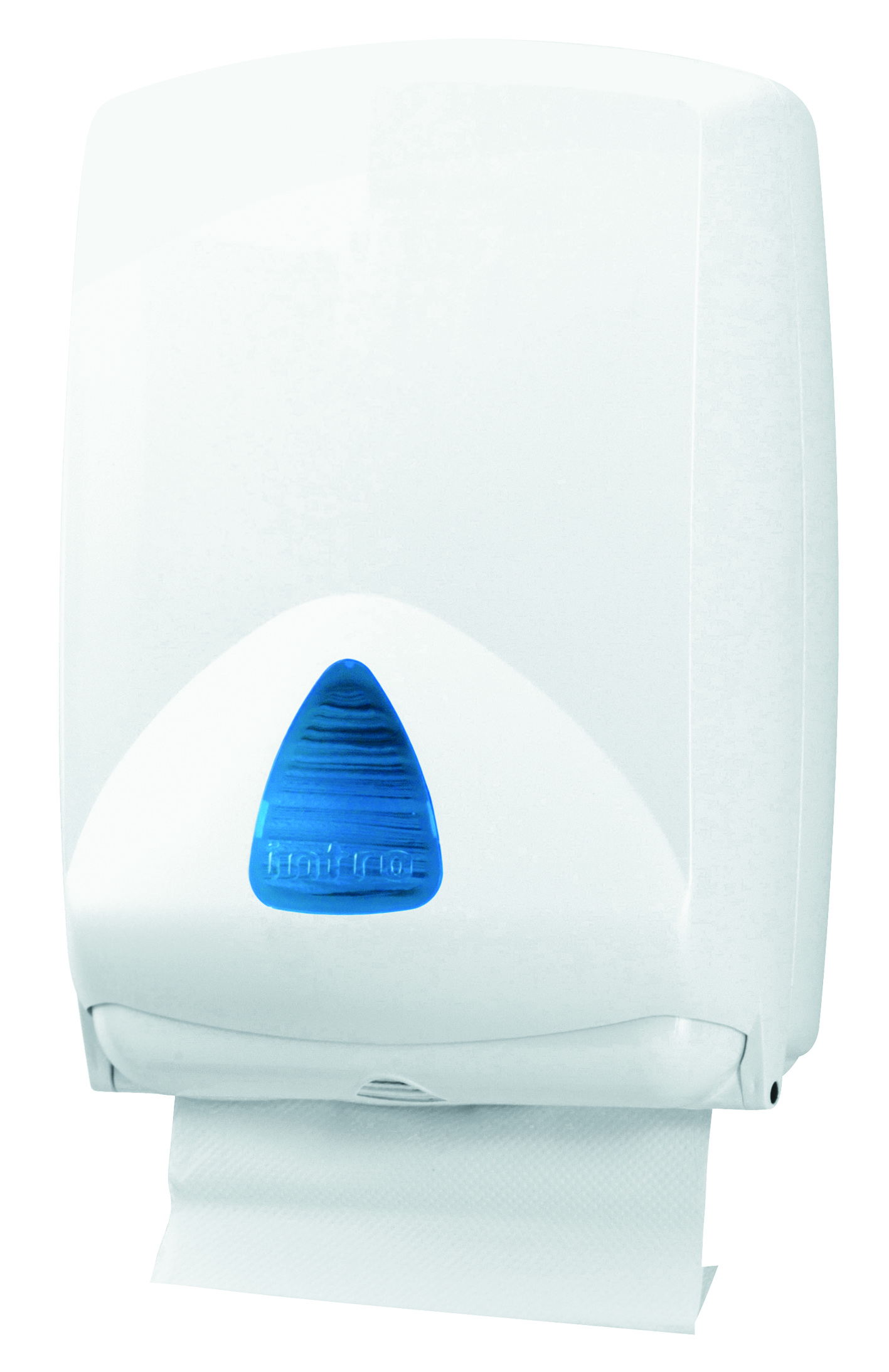 Dispensador de papel de toalla plegada manual de ABS blanco para adosar en pared.