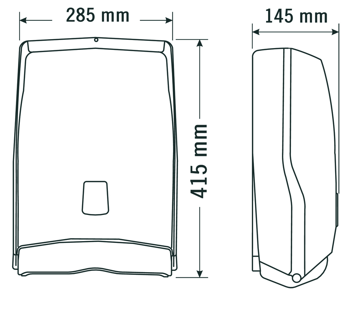 • Puede albergar hasta 500 hojas de papel toalla C/Z de 26 cm de longitud por 10,5 cm de ancho como máximo.