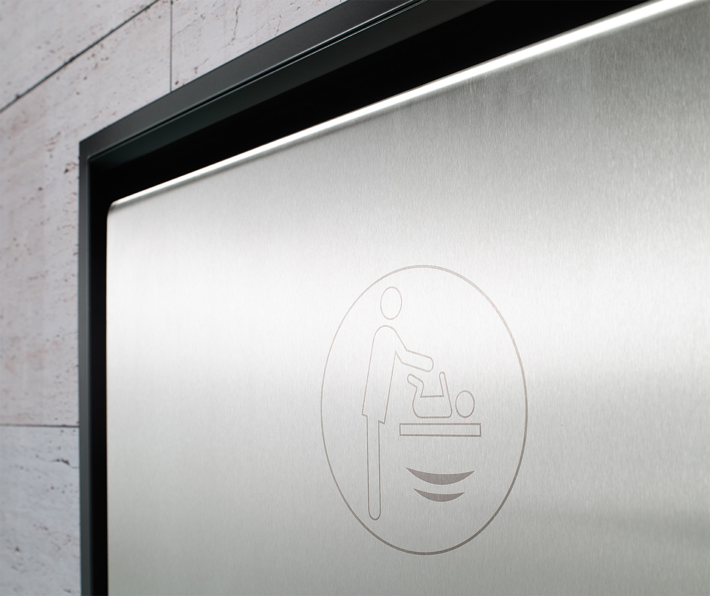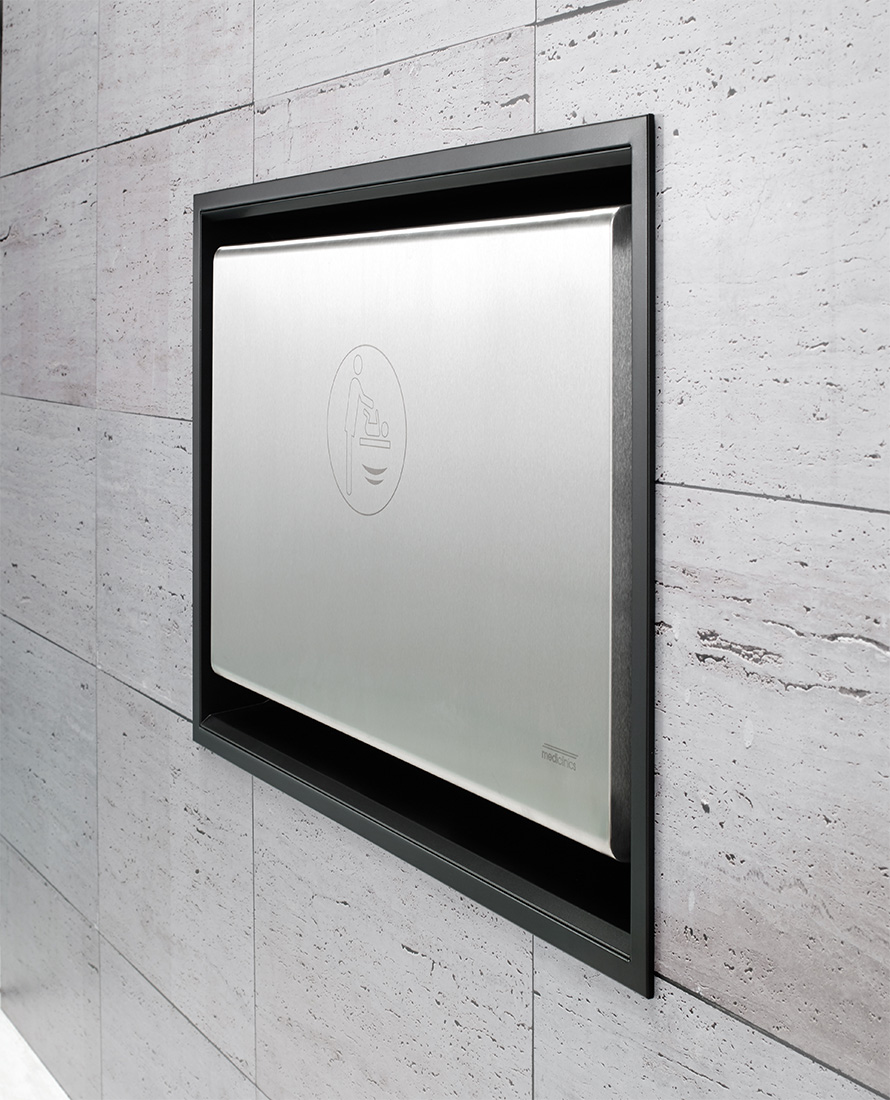 • Possibility to combine finishes between the recessed kit and the baby changing station.