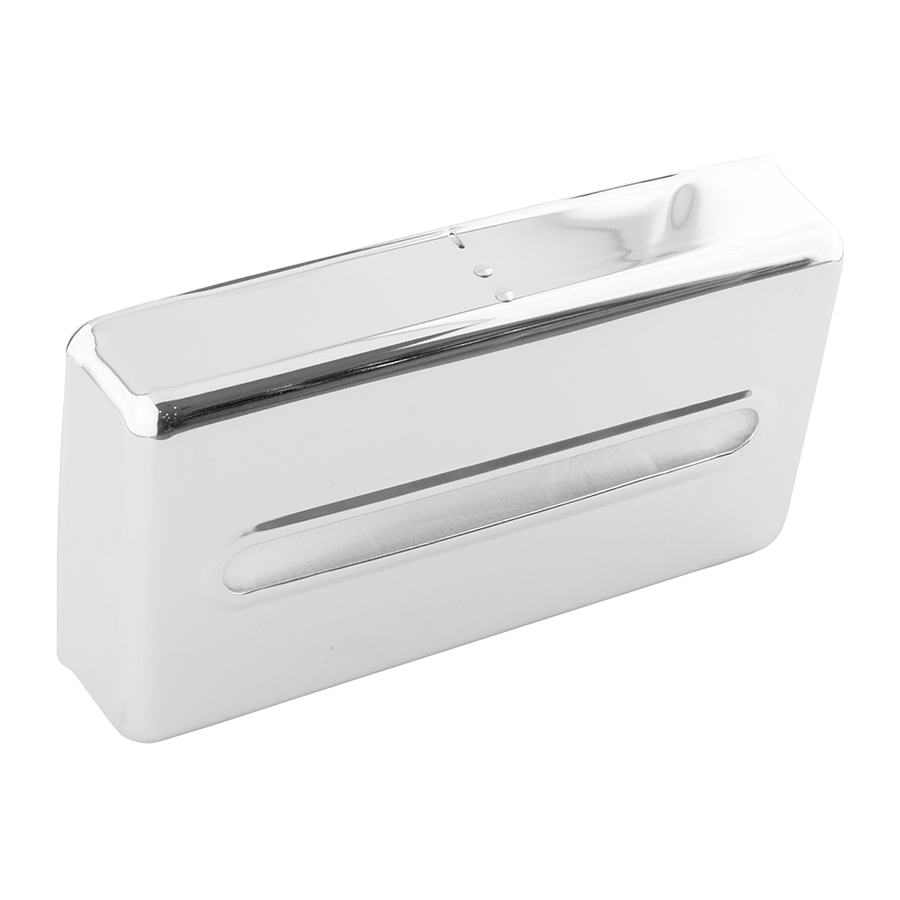 Manual facial tissue dispenser, made of chrome-plated brass, bright finish, suitable for countertop or wall mounting.