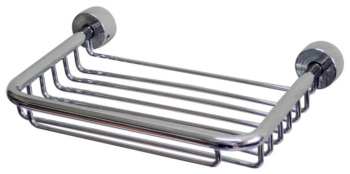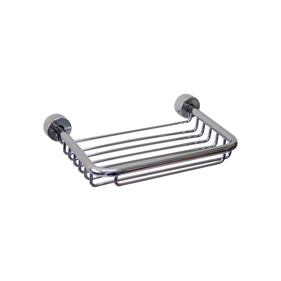 Rectangular soap dish for wall mounting, consisting of a perimeter frame and basket.