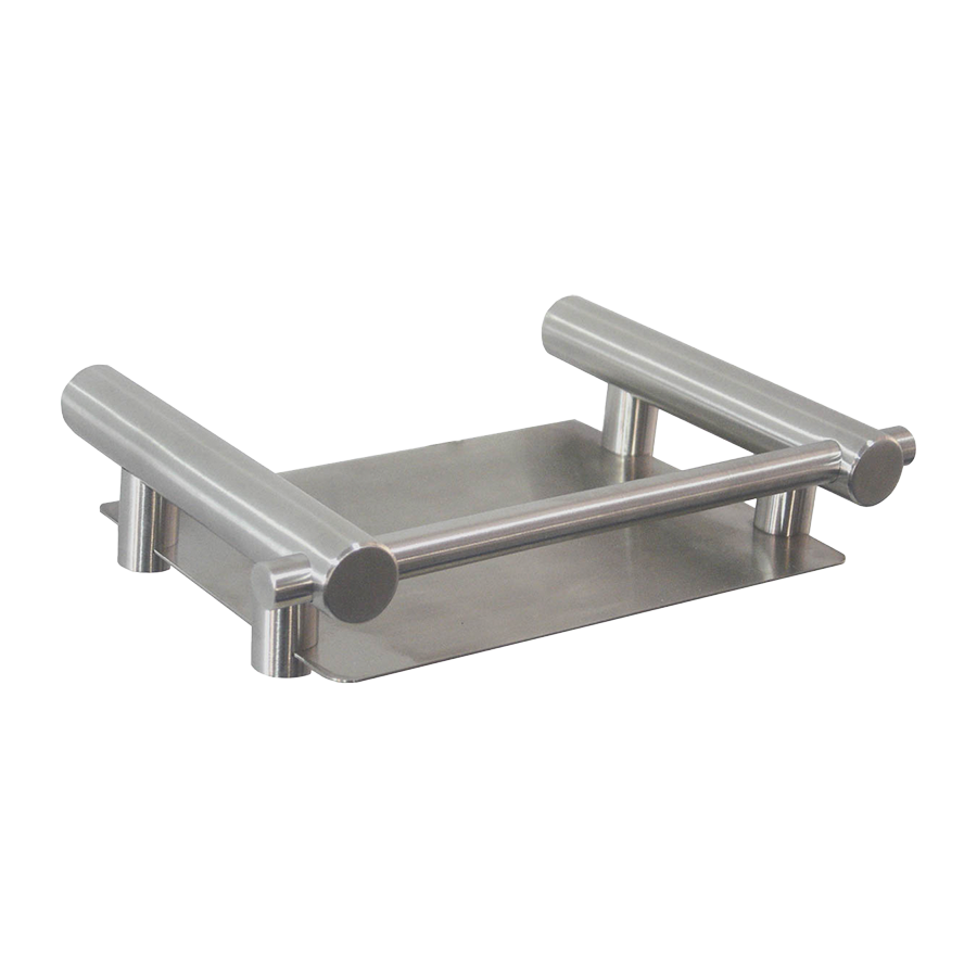 Soap dish for wall mounting, made with cylindrical bar and AISI 304 stainless steel sheet.