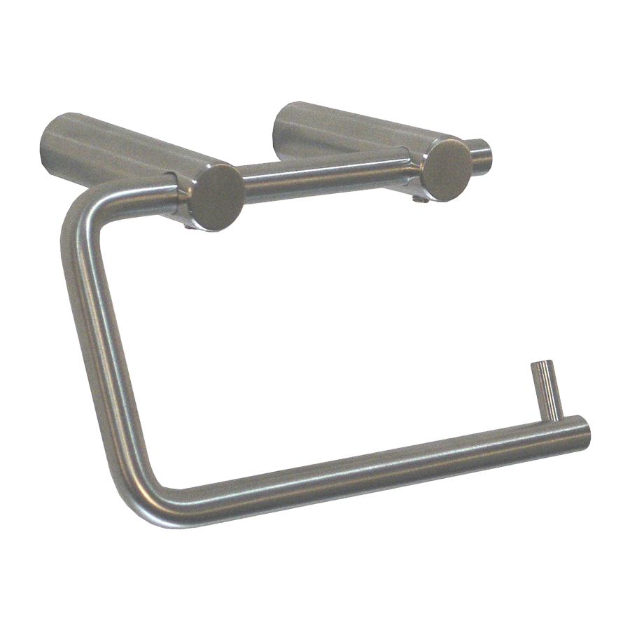 Single toilet roll holder without front cover, for wall mounting, made with cylindrical bar in AISI 304 stainless steel.