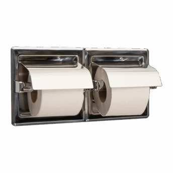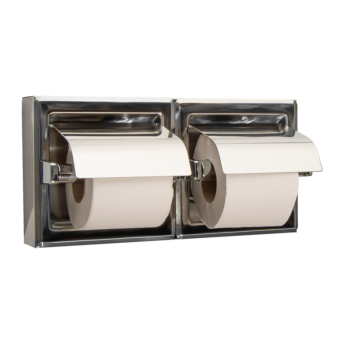 Double toilet paper holder with lid, recessed wall-mounted