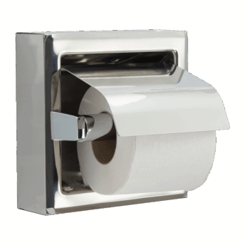 Recessed stainless steel toilet roll holder for toilet paper