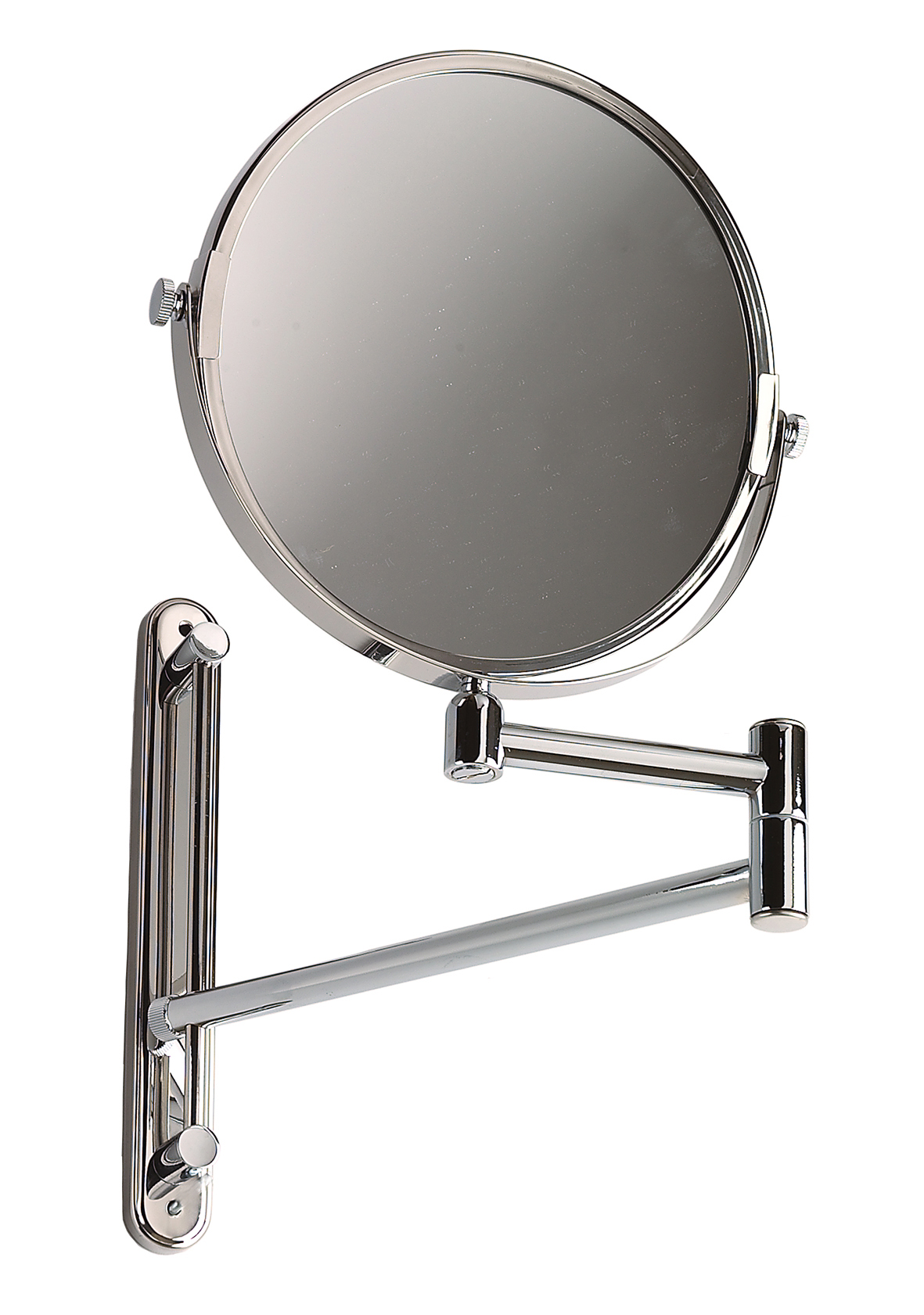 Double-sided mirror with 3x magnification, two adjustable and extendable arms, for wall mounting, made of AISI 304 stainless steel with a bright finish.