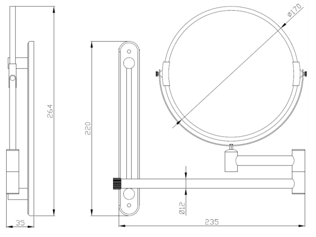 • Mirror with normal view (x1) and a side with triple magnification (x3) for detail work.