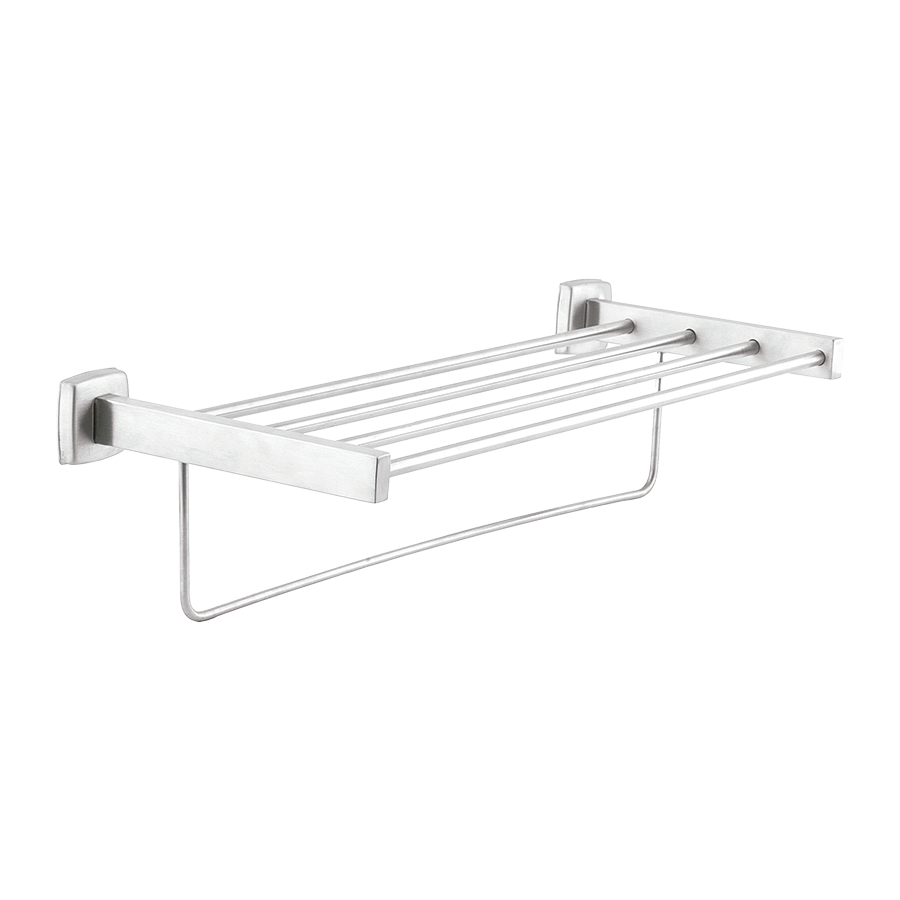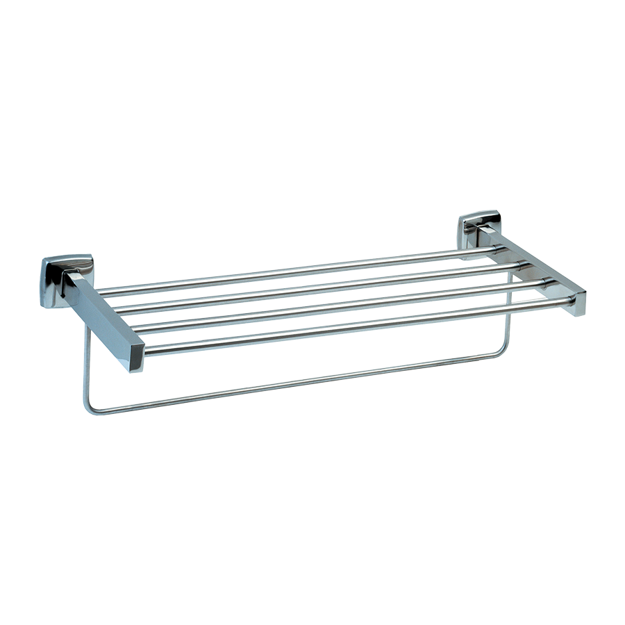 Towel rail with storage shelf for the bathroom, for wall mounting, made of AISI 304 stainless steel.