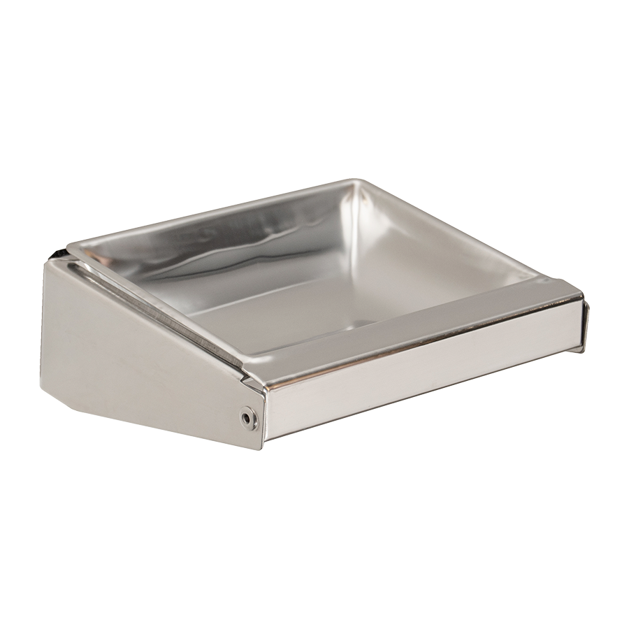 Manual wall-mounted ashtray with tilting base, made of AISI 304 stainless steel.
