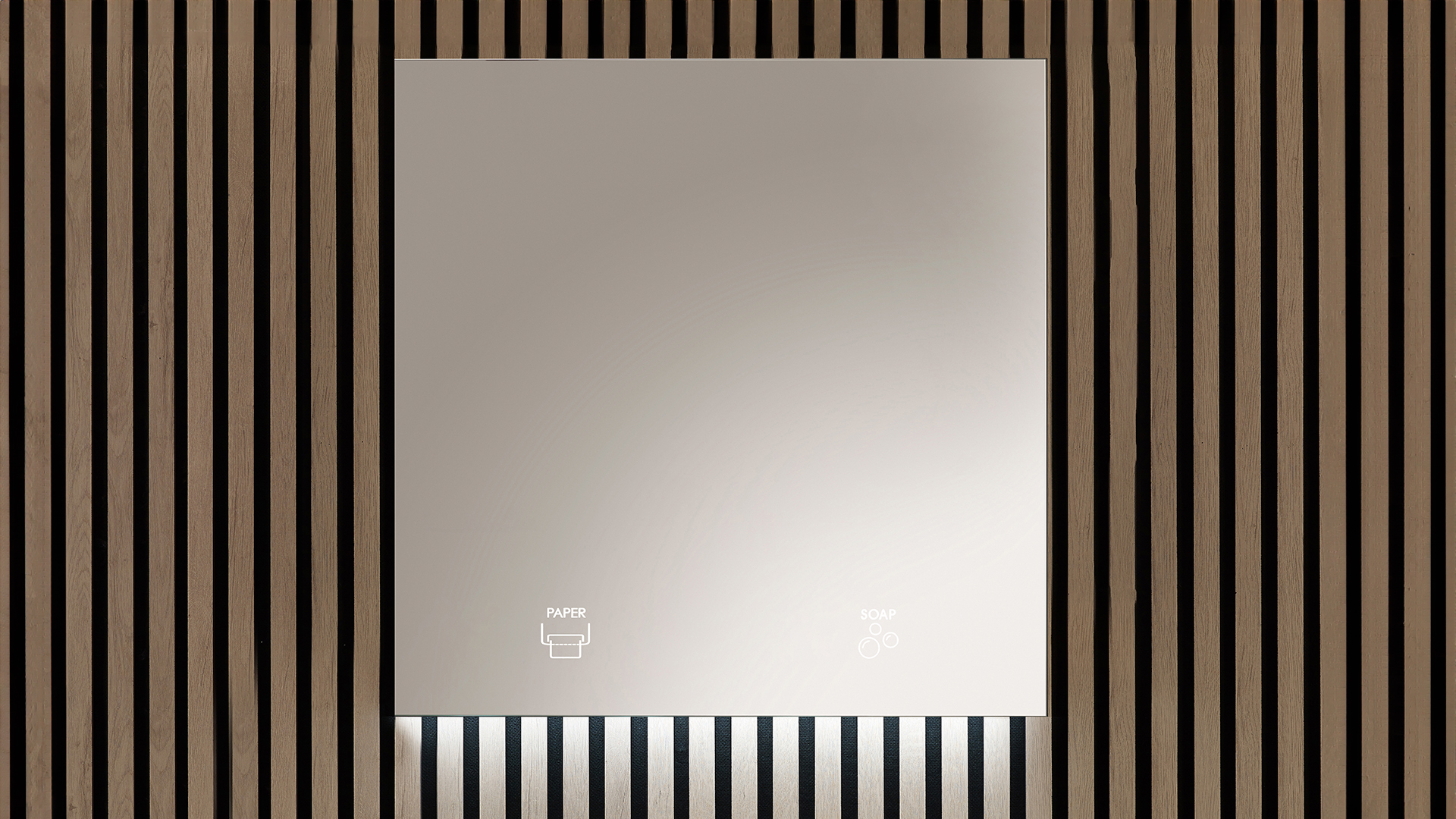 The mirror features soap and paper pictograms for intuitive identification.