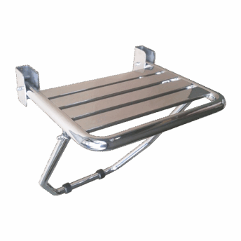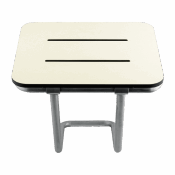 L-shaped folding shower seat, in phenolic resin and satin stainless steel.