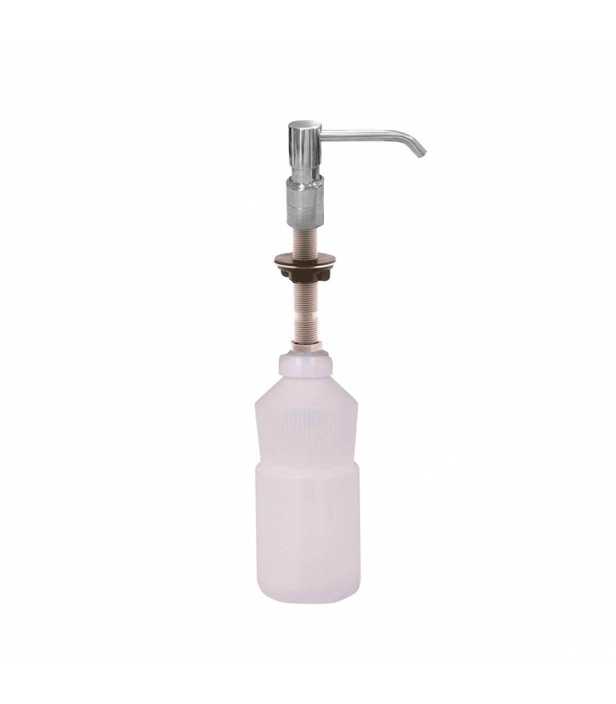 Stainless steel AISI 304 manual recessed foam soap dispenser with bright finish.