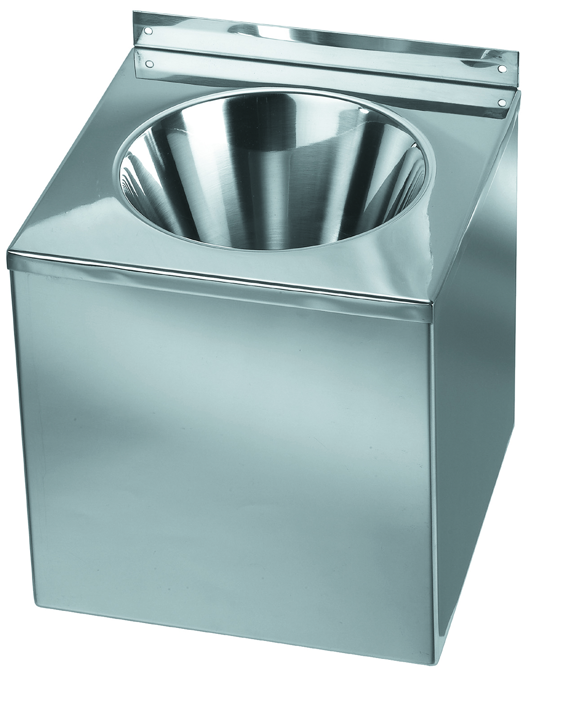 Anti-vandal circular washbasin with lower access, for direct wall mounting.