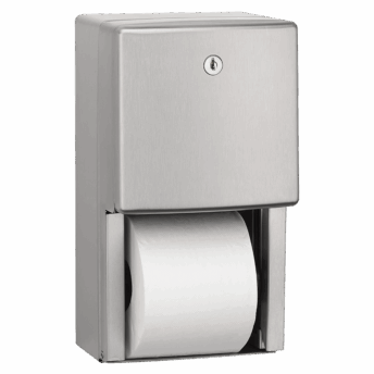 Double satin finish stainless steel toilet roll dispenser for wall installation