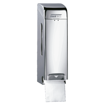 Toilet paper dispenser with capacity for 3 rolls, made of steel or stainless steel.