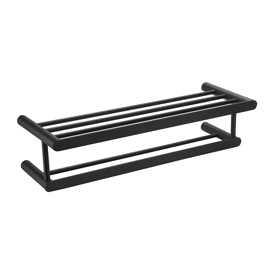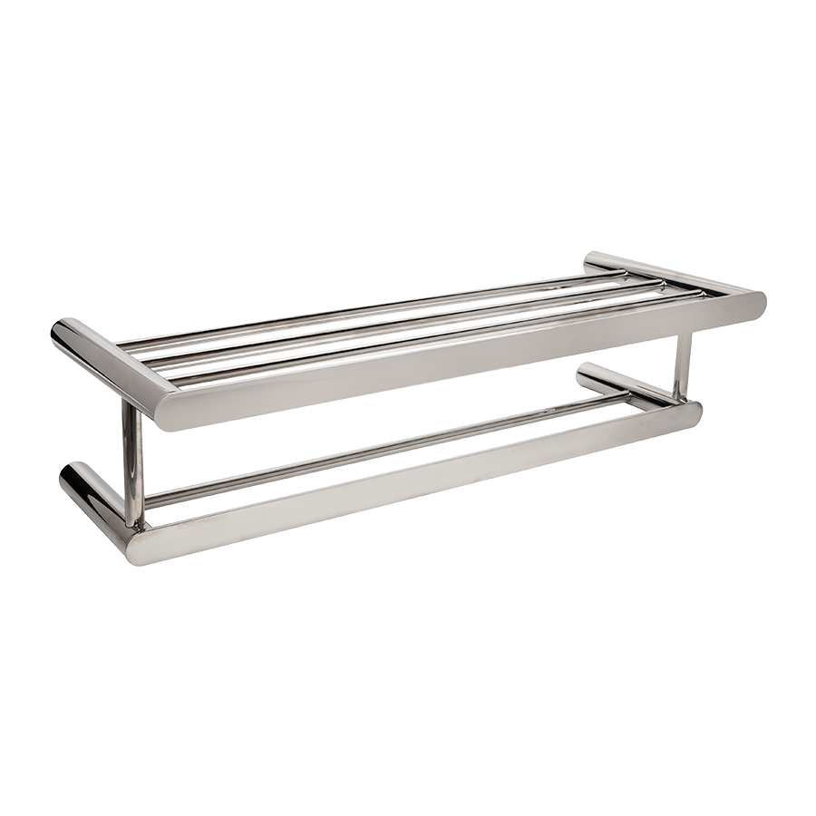 Toallero para baño con repisa con cuatro puntos de apoyo a pared .