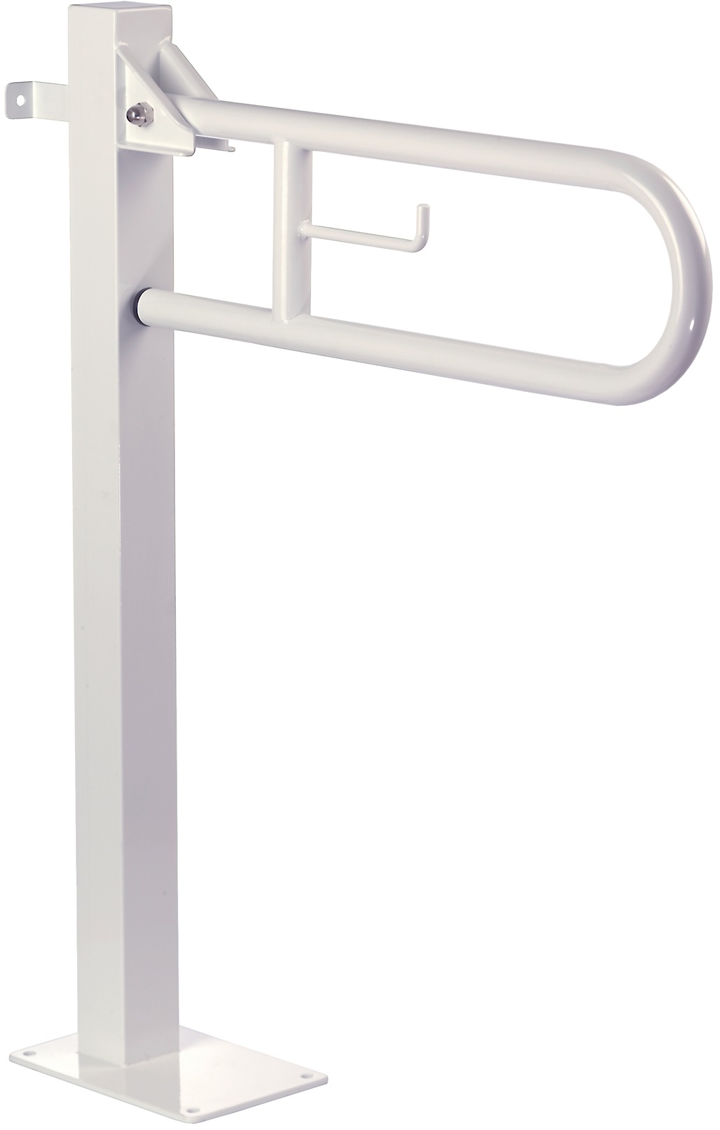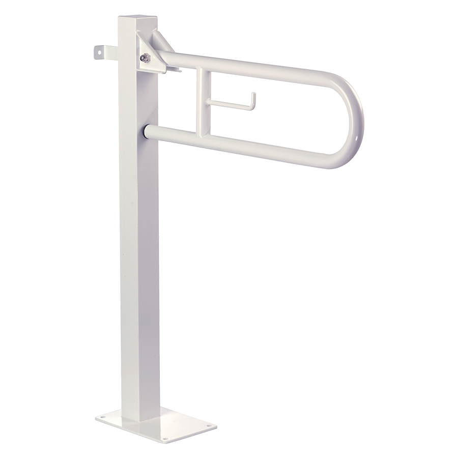 Barra de apoyo abatible de giro vertical sobre columna, para su instalación a suelo y para colocar junto al inodoro.