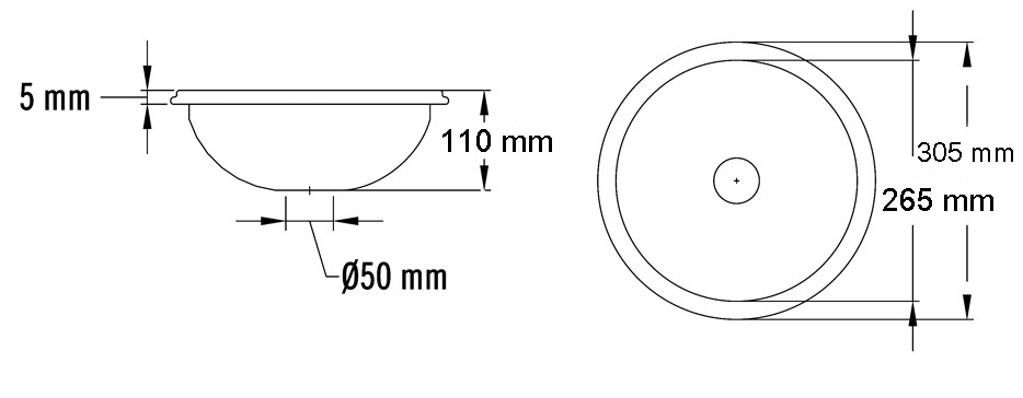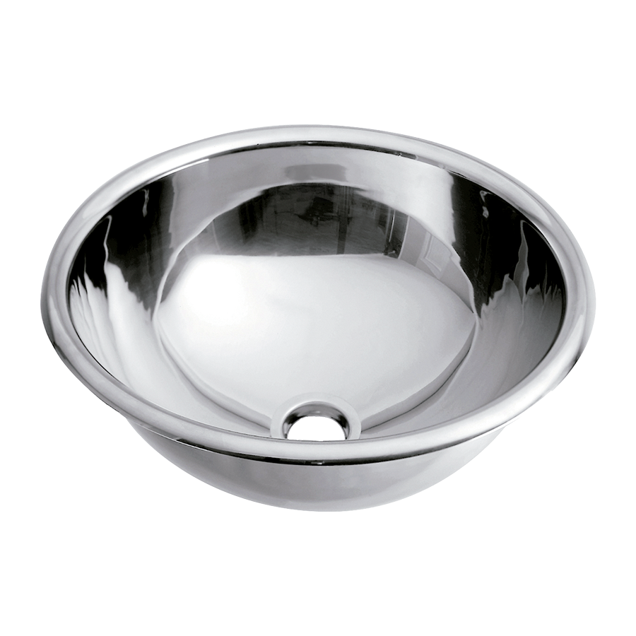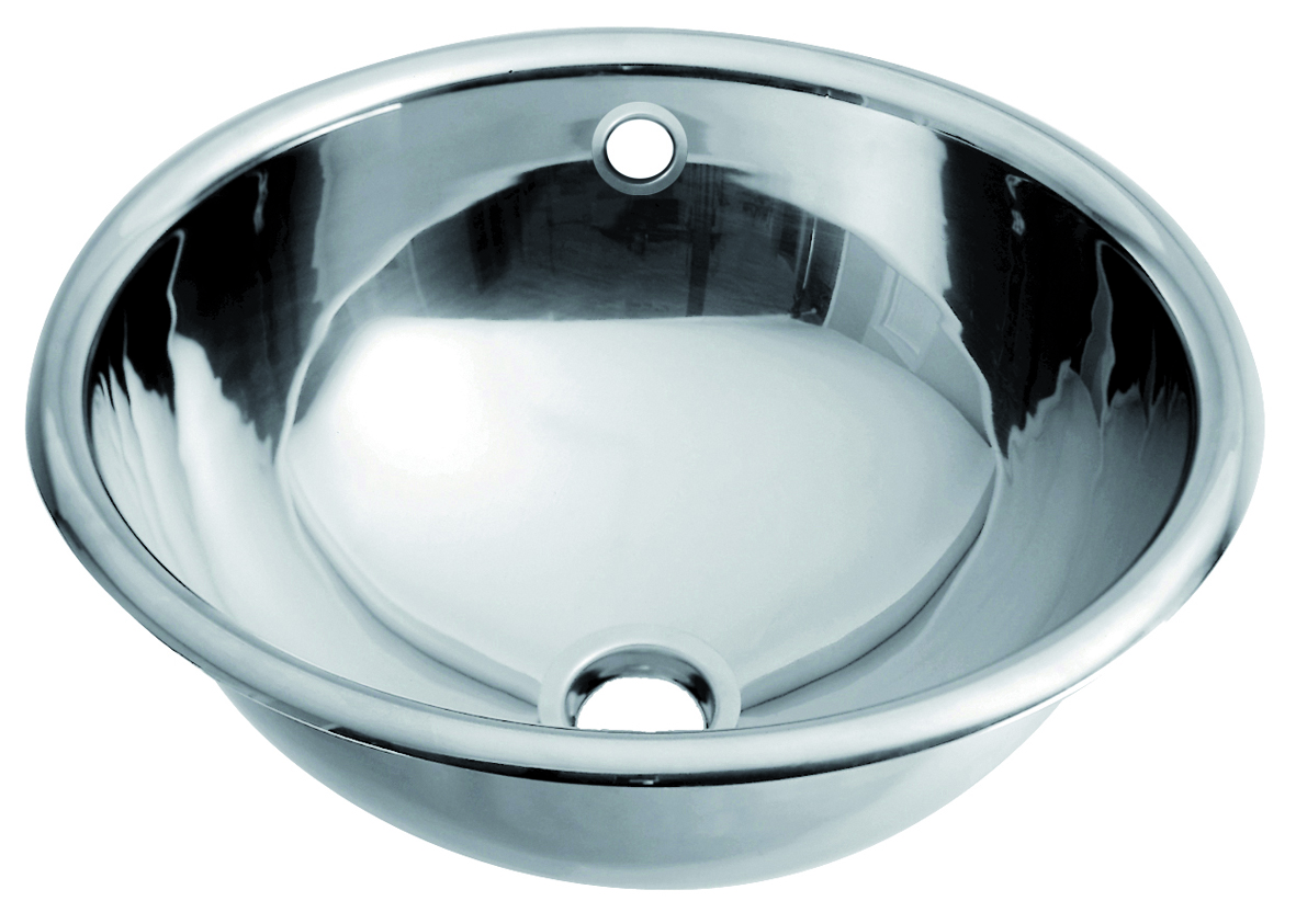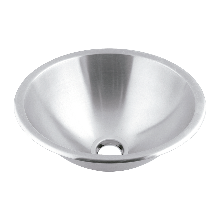 Lavamanos semiesférico con agujero rebosadero para encastrar en la encimera del baño.