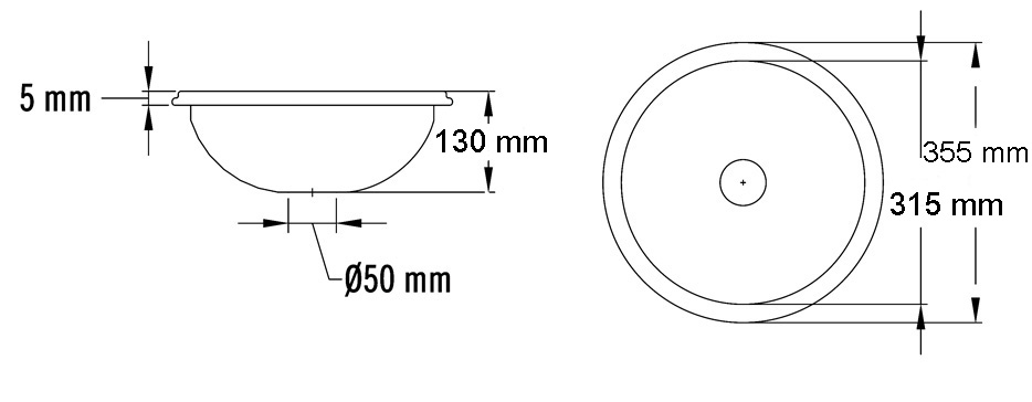 Lavamanos semiesférico con agujero rebosadero para encastrar en la encimera del baño.