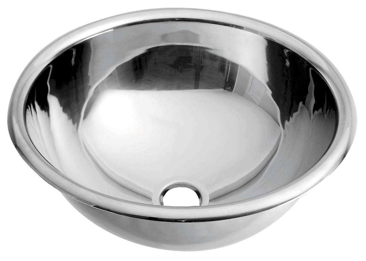 Lavamanos semiesférico sin rebosadero fabricado con acero inoxidable AISI 304.