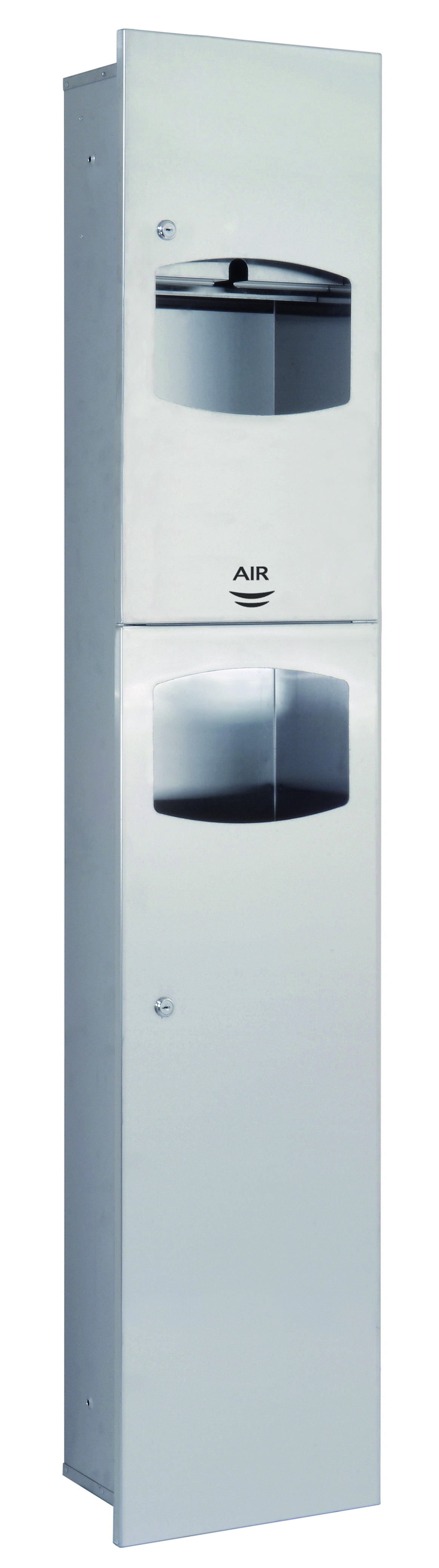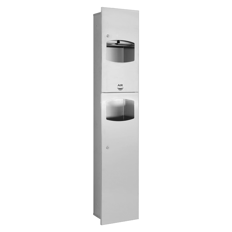Unidad combinada con secador de manos, dispensador papel toalla y papelera para empotrar en la pared