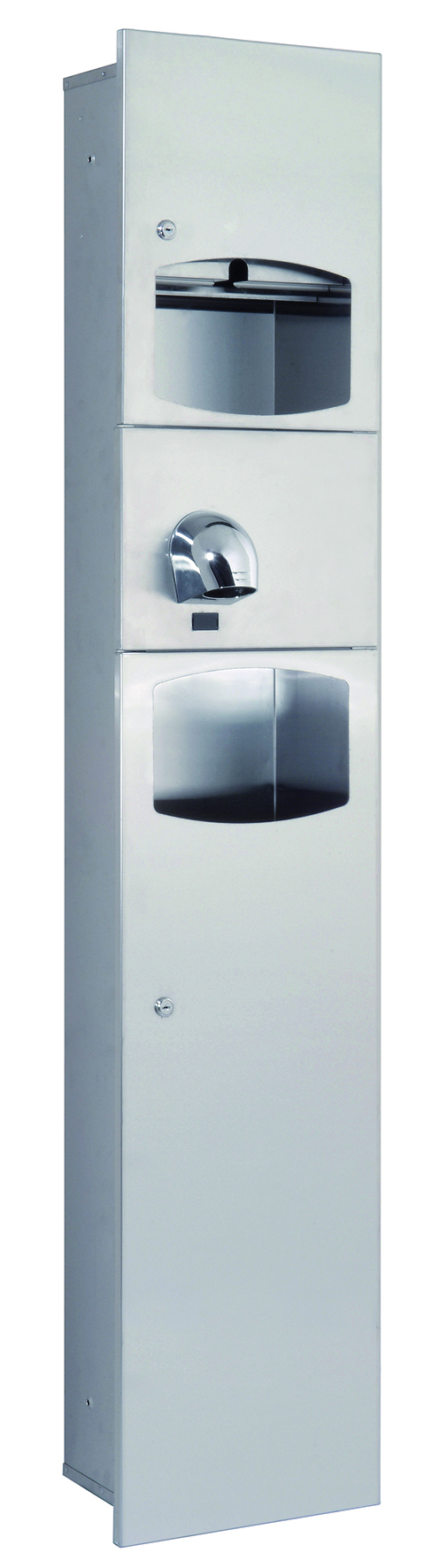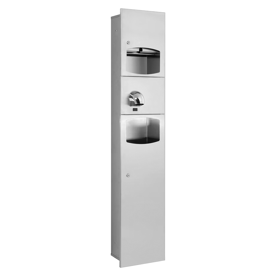 Unidad combinada con secador de manos, dispensador papel toalla y papelera para empotrar en la pared