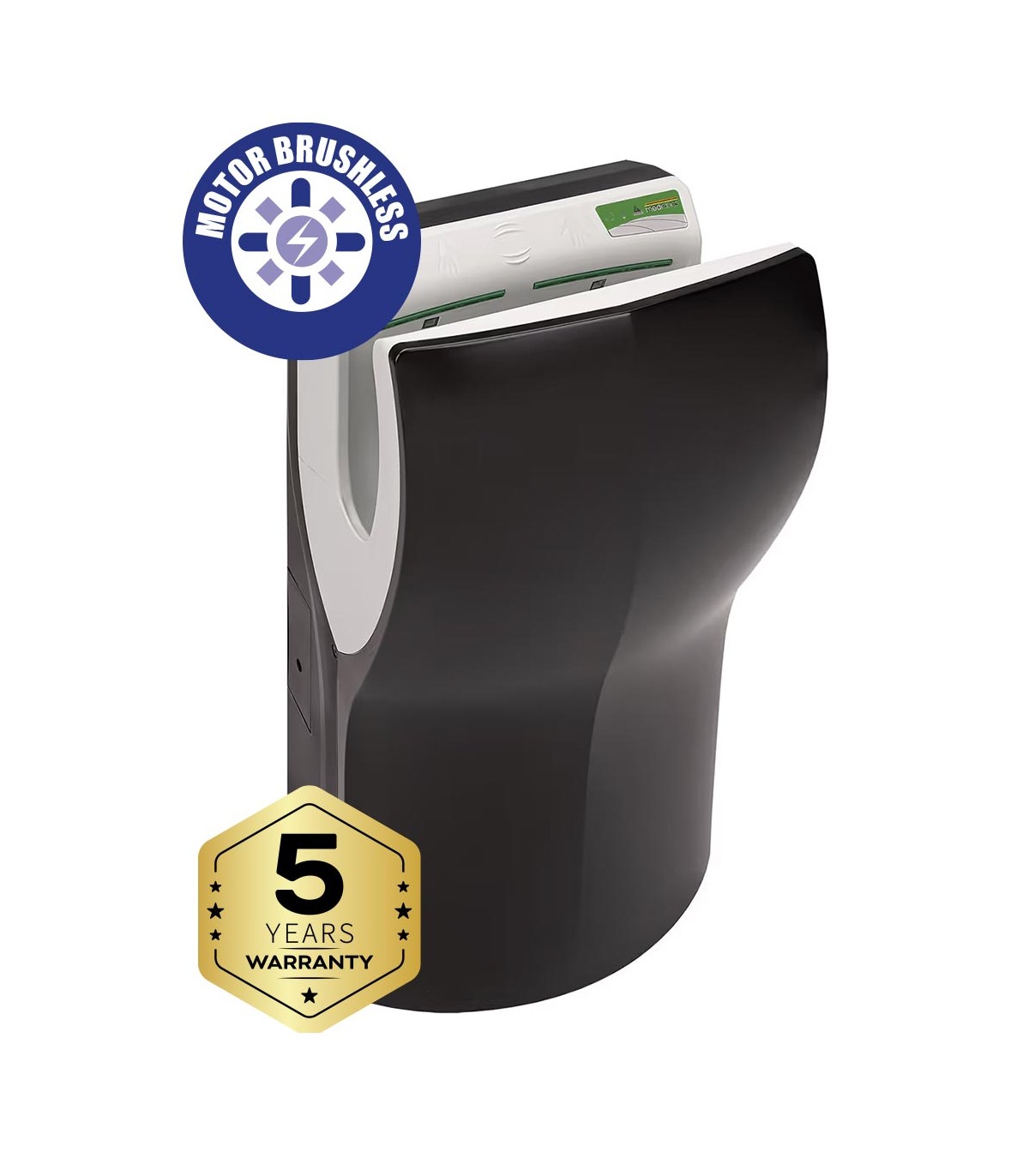 Secador de manos automático Dualflow Plus con carcasa de ABS, acabado negro.