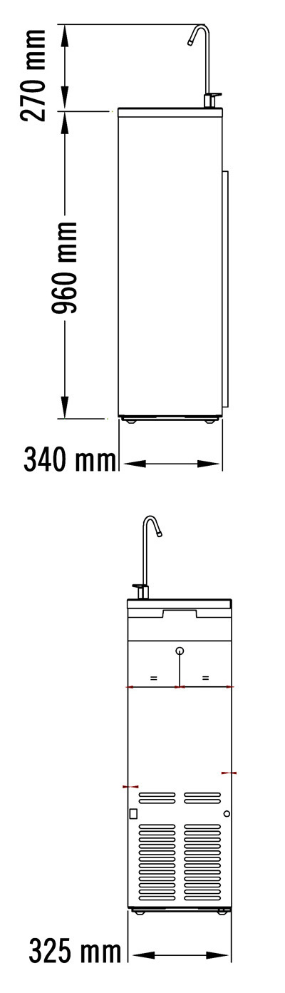 • Requiere toma de agua, desagüe y enchufe. 30 L/h de agua fría con suministro constante.