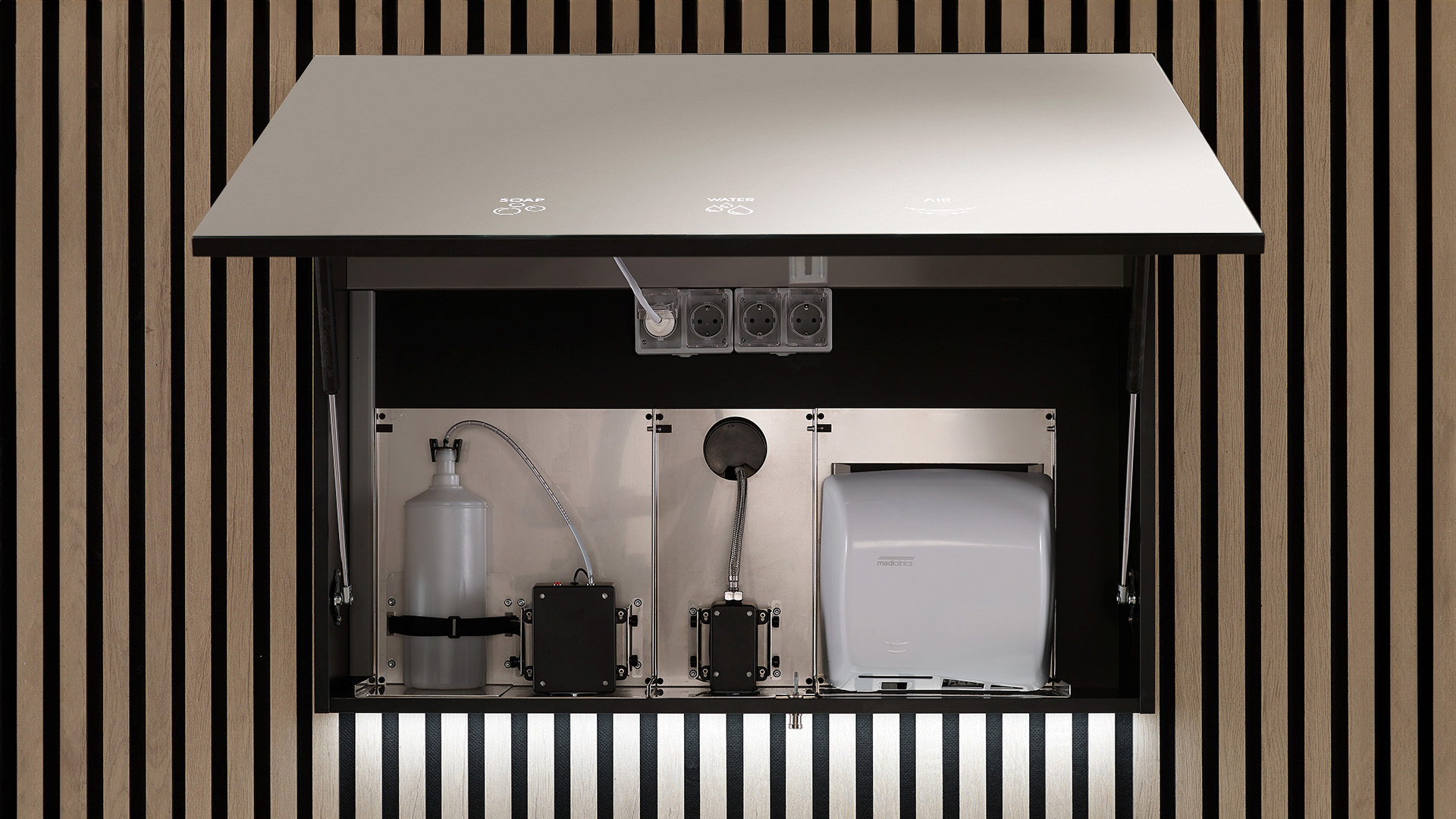 Armadietto a 3 moduli: Acqua + sapone + asciugamani
