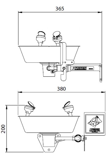 • Funciona con mínimo 14 L/min a 2,4 bar para lavado ocular seguro. Activación manual mediante placa ergonómica.