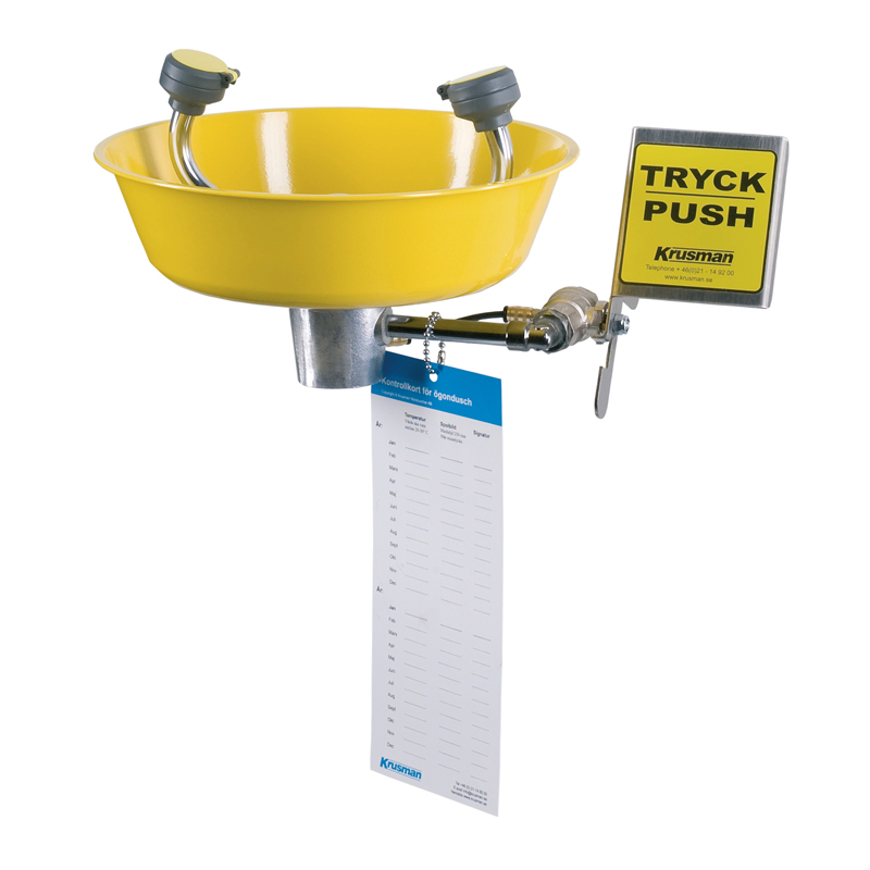Lavaojos de emergencia para instalar directamente a la pared, fabricado por Krusman.