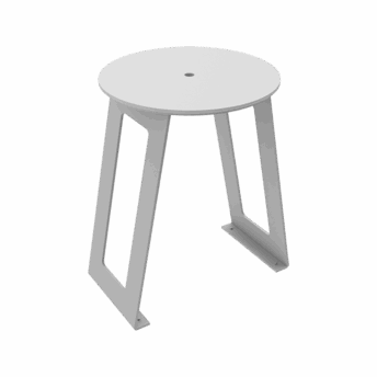 Asiento abatible con pata, en resina fenólica y acero inoxidable satinado.