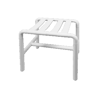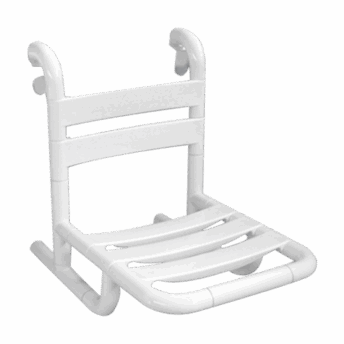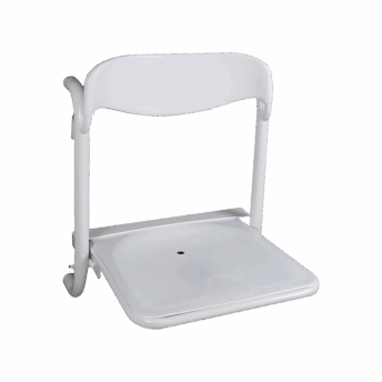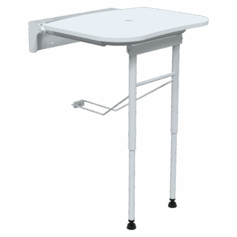 Asiento de ducha abatible en PEHD blanco con patas regulables reforzadas.