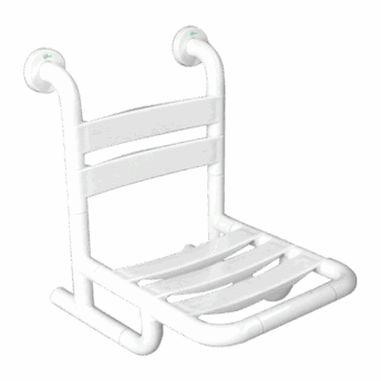Asiento de ducha abatible y extraíble (para colgar en asas de seguridad tipo Goman), con sistema de bloqueo en posición vertical.