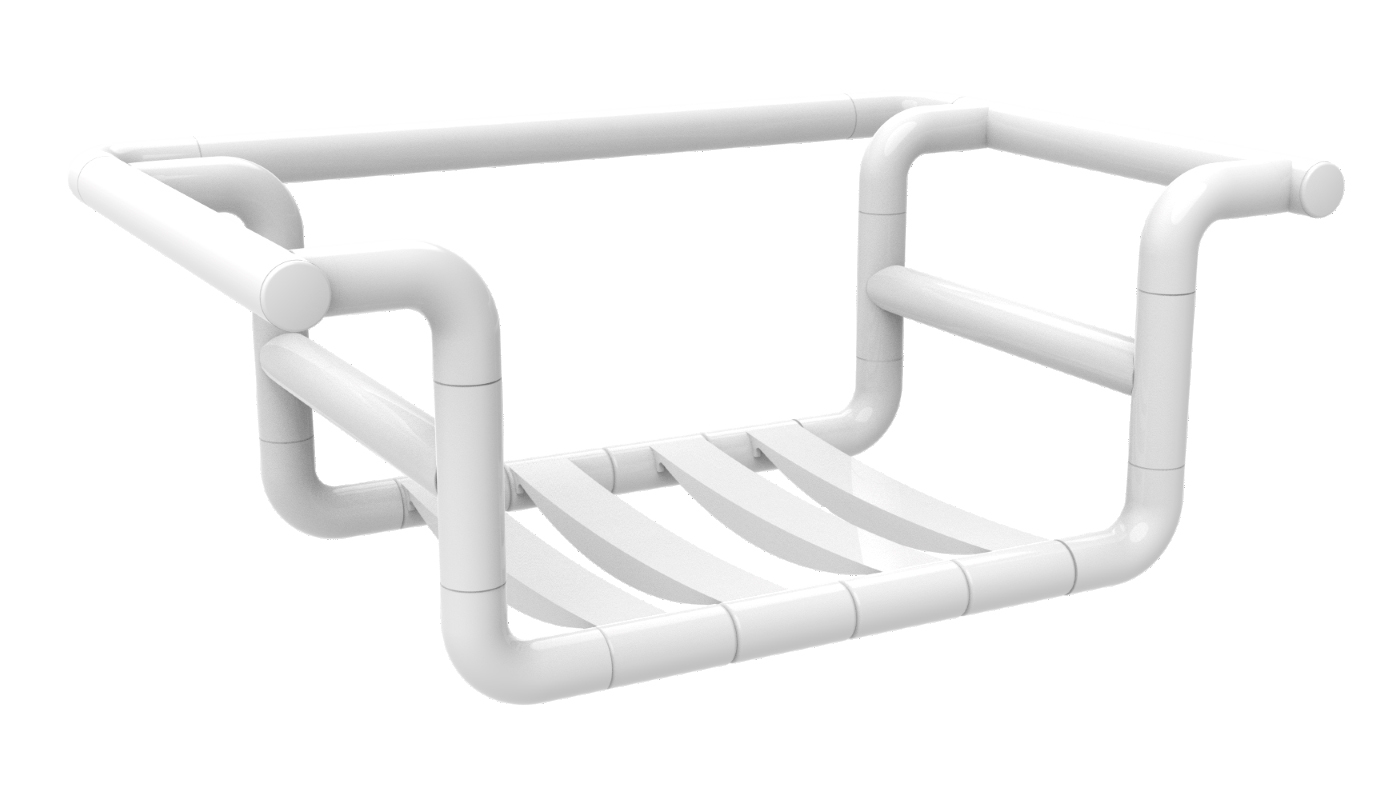 • Unido con juntas de acoplamiento de nylon y varilla roscada de acero. Asiento en lamas de PPL
