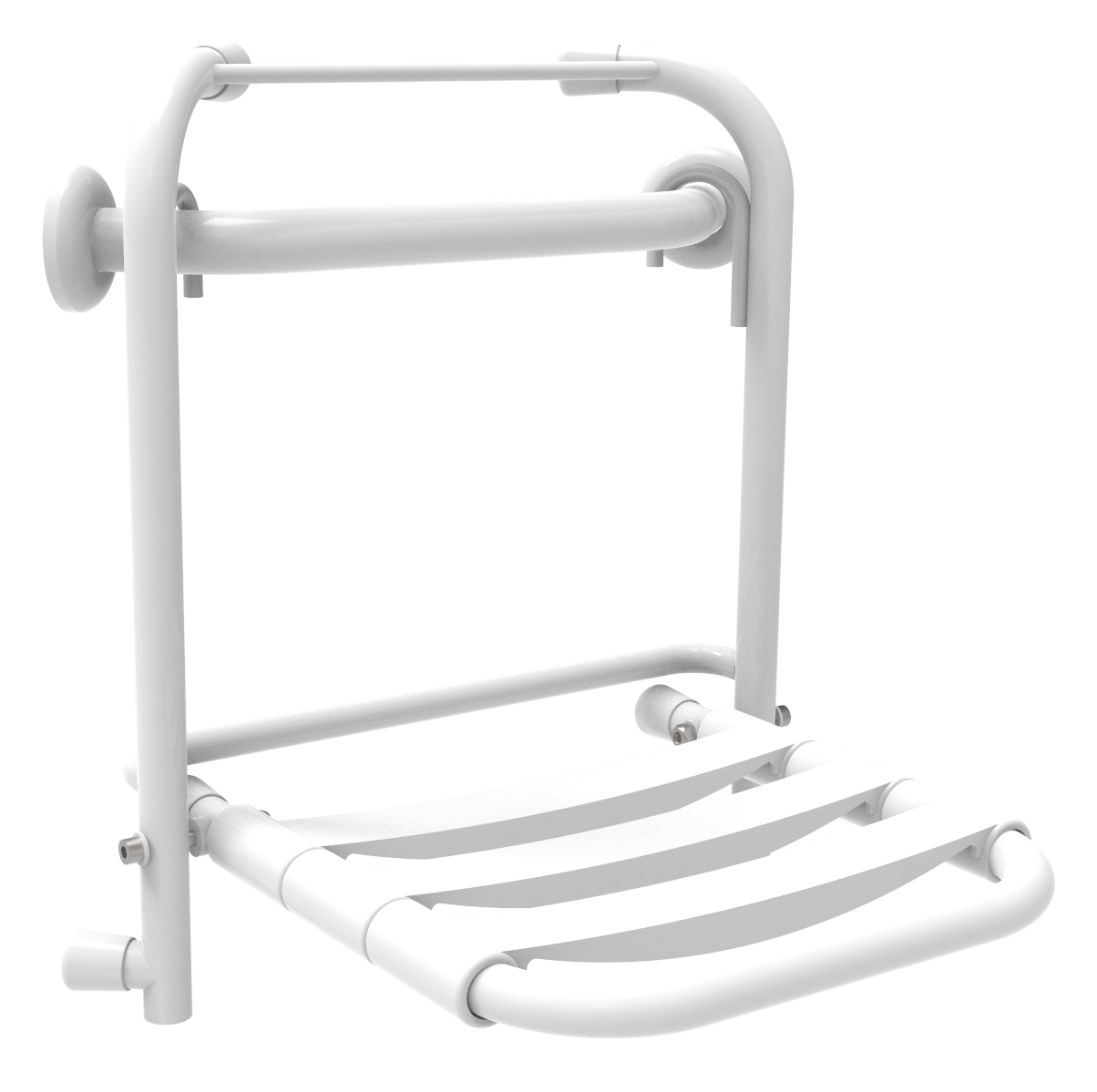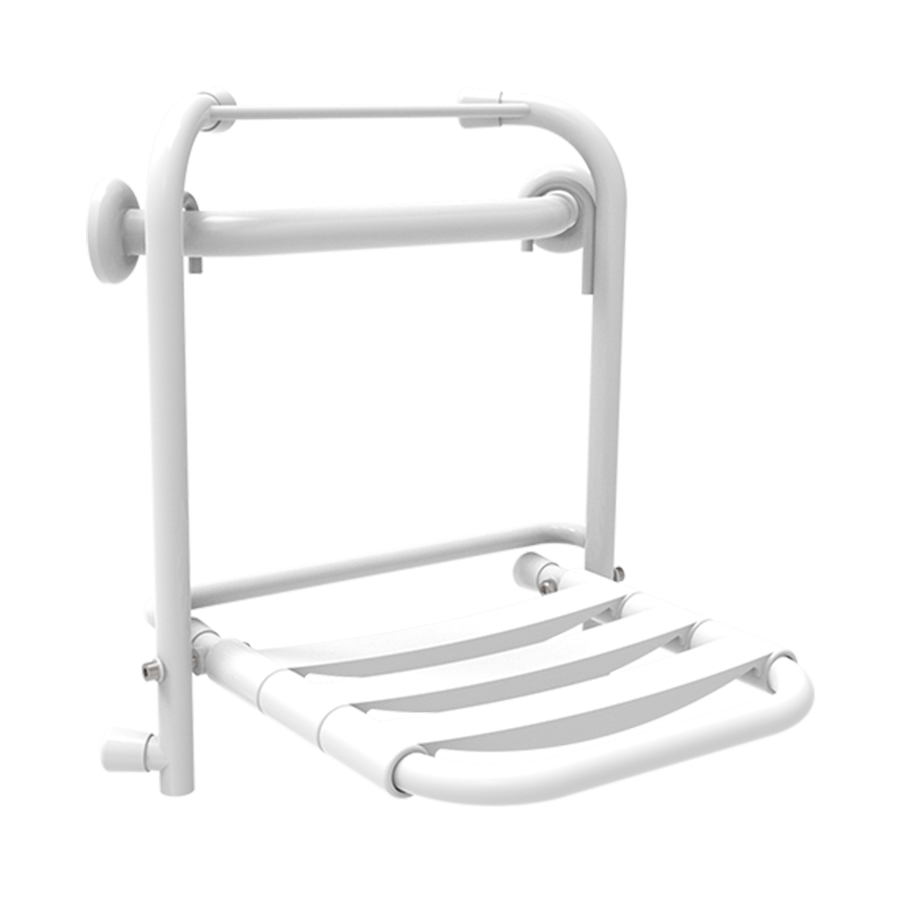 Asiento de ducha abatible y extraible sujeto en barra de soporte