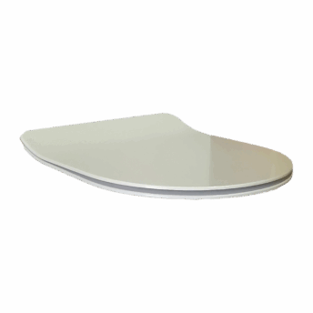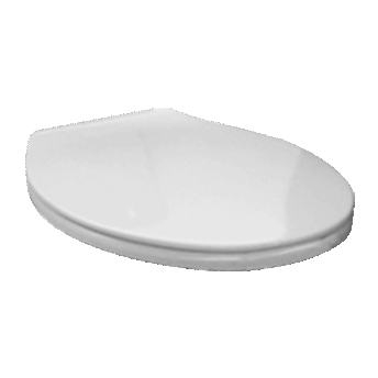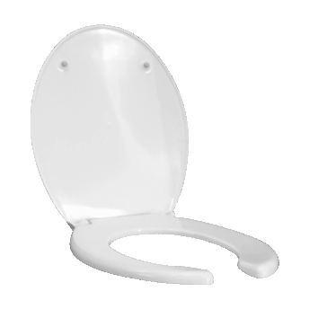 Asiento de inodoro blanco con apertura frontal y tapa en resina termoendurecible Duroplast.