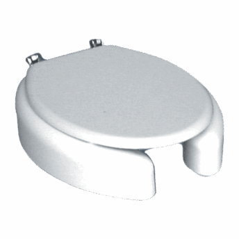 Asiento elevador abierto con tapa para inodoros con bisagras universales.