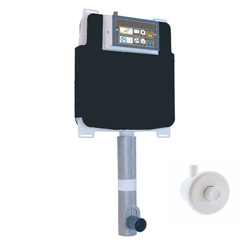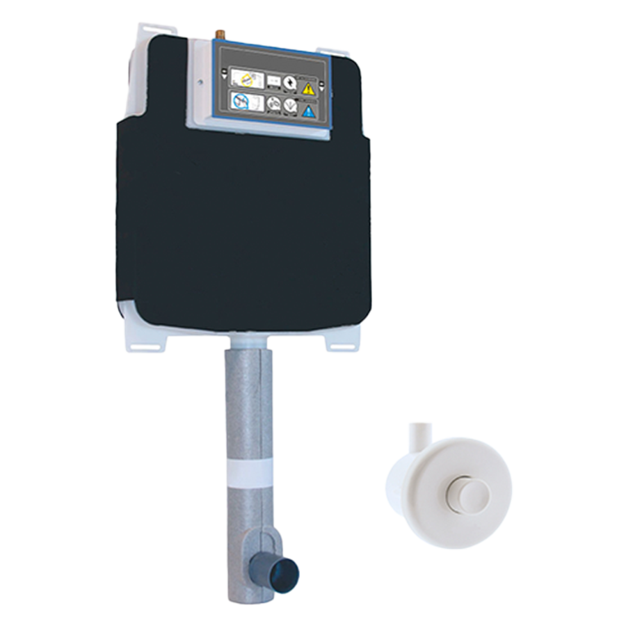 Cisterna empotrada de 3/6 L (fácilmente modificable a 2/4 L) con placa de pared con 2 botones de funcionamiento.
