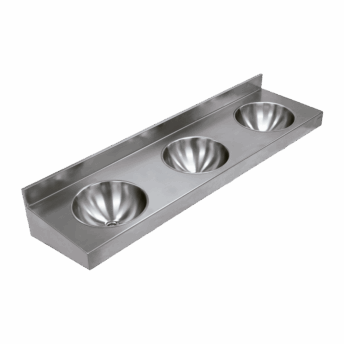 Lavamanos encimera de tres senos, de 360 mm de diámetro, para adosar en la pared